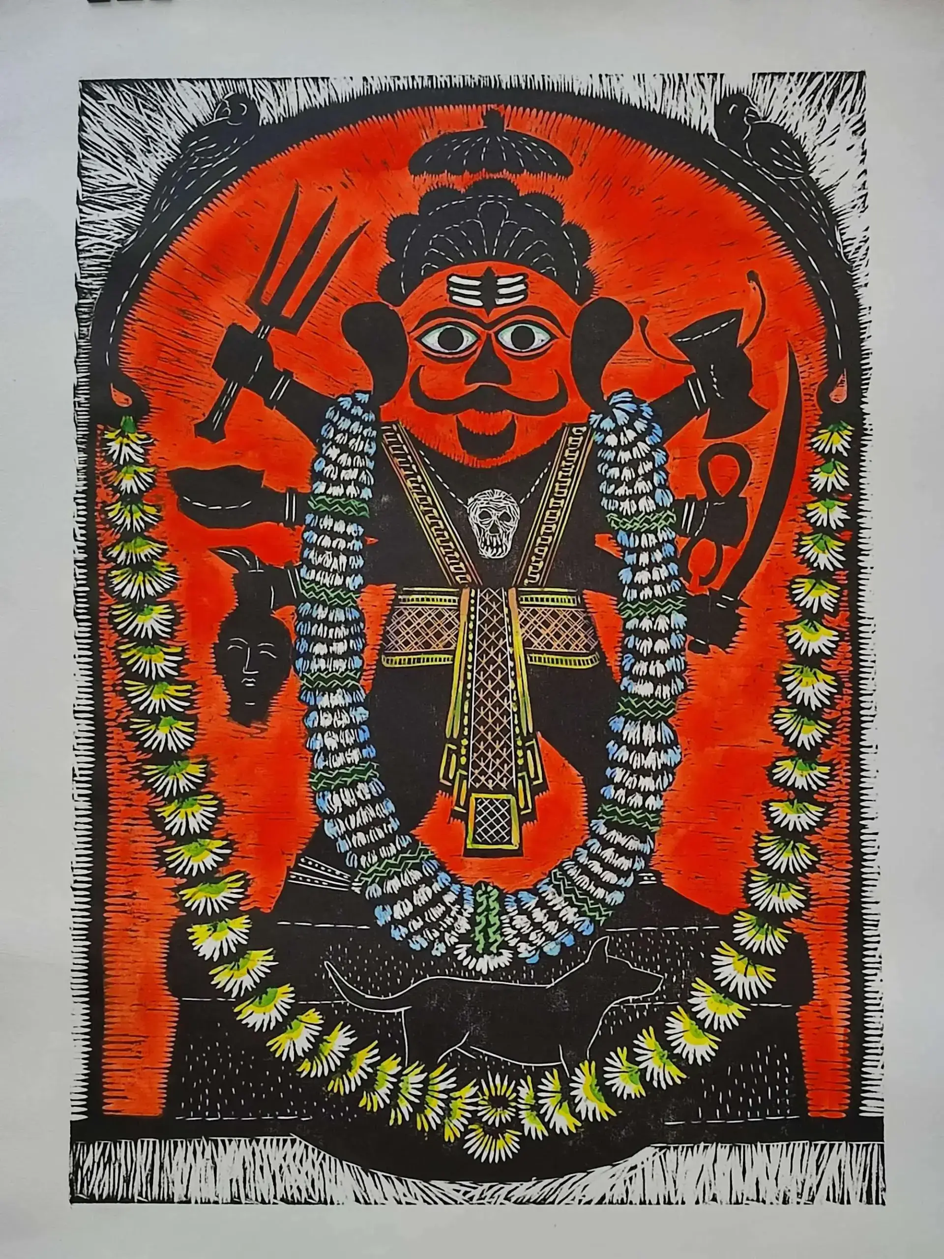 Hand Coloured Woodcut-I