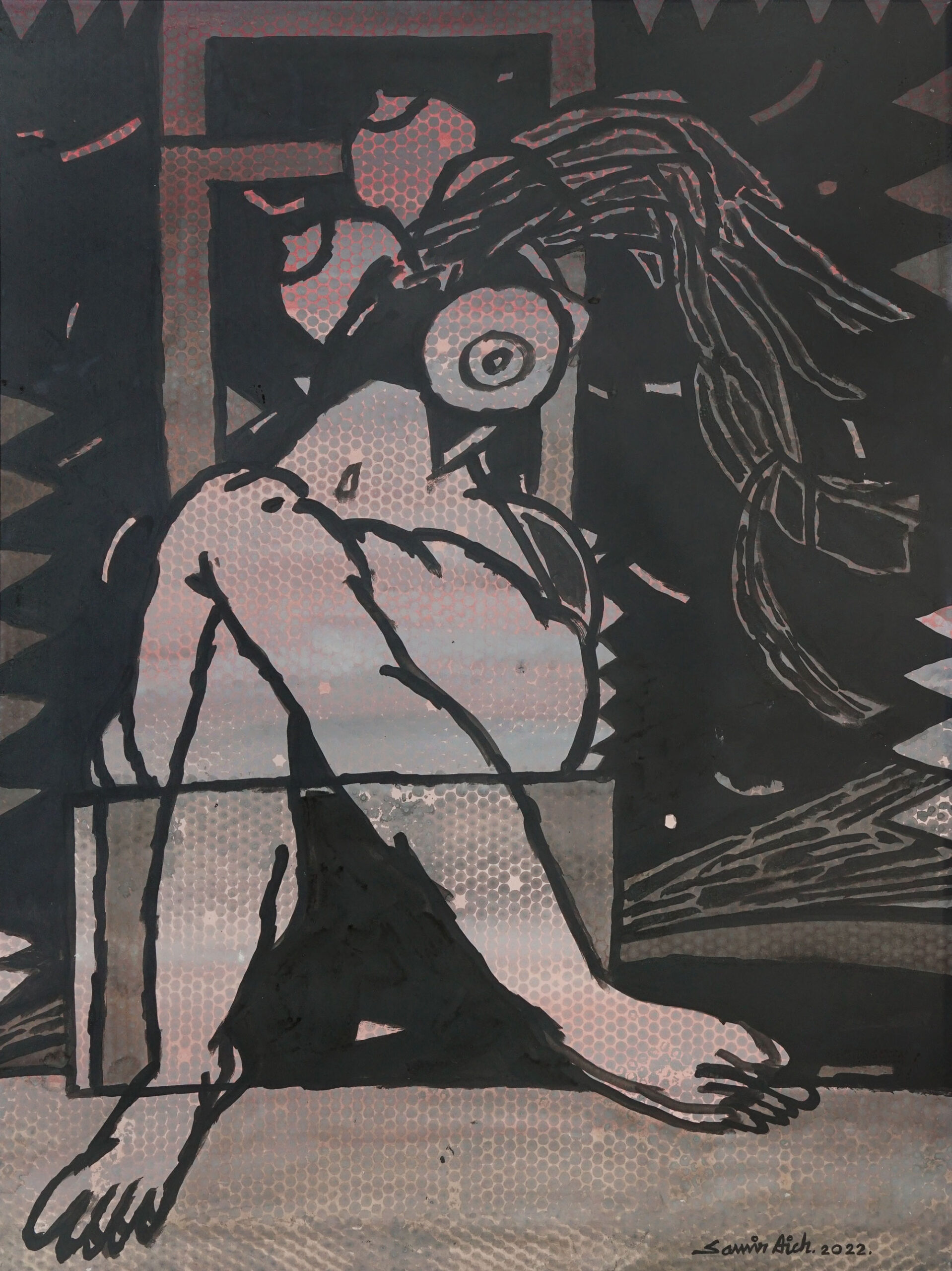Dry Pastel, Acrylic, Conte, Pen, Ink and Brush on Acid free Fabriano Paper