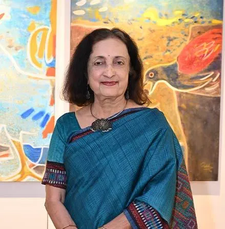 Rekha Rao Hebbar was initiated into painting under the guidance of her father, the eminent artist K. K. Hebbar, and holds a postgraduate degree in History from Bombay University. Her academic grounding informs a reflective and nuanced approach to visual practice.